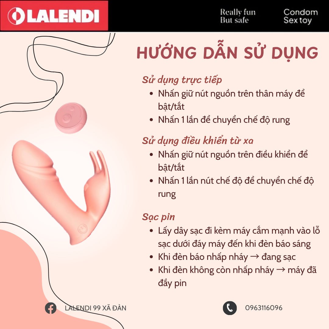 Muốn trải nghiệm một chút public cùng người ấy mà ngại chưa biết làm sao? Hay chỉ đơn giản là tặng cho bản thân một buổi "tự sướng" đê mê tới bến? Chiếc máy quần lót rung này đảm bảo sẽ đưa các bạn nữ lên nóc Everest ngay và luôn!.